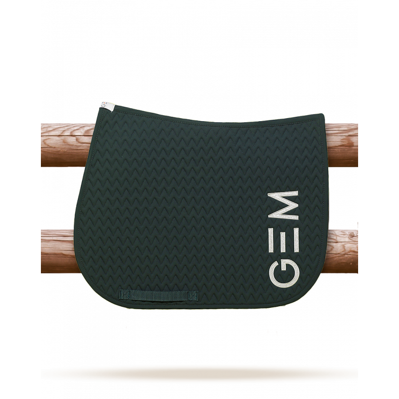 Gros logo GEM des 2 côtés du tapis, avec broderie à paillettes argentées.