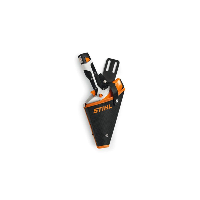 L’étui pour GTA 26 a spécialement été conçu pour y glisser la scie de jardin et ainsi garder les deux mains libres pour d’autres interventions. Sa sangle-cuisse fixe l'étui pour plus de confort et de stabilité. Le stockage est sécurisé grâce à un rabat supplémentaire qui retient l'outil dans l’étui.