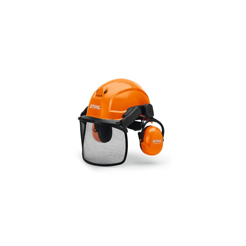 Ensemble de casque conçu pour les professionnels et les loisirs. Poids optimisé pour un confort élevé. Très bonne protection auditive (SNR 28). Large visière en nylon pour une bonne visibilité. Molette pour un ajustement confortable de l'arceau même lorsque vous le portez. Aérations dans la partie supérieure de la coque du casque. Conforme aux normes EN 352, EN 397, EN 1731.