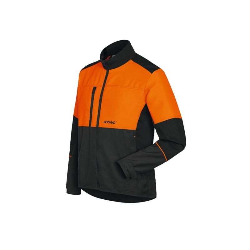 Veste avec proportion élevée de couleur de signalisation pour une meilleure visibilité, matériau thermoactif garantissant un confort optimal. Coloris anthracite, noir et orange de signalisation. Deux poches latérales et une poche zippée au niveau de la poitrine pour conserver en toute sécurité un smartphone ou une trousse de premiers secours. Liberté de mouvement au niveau des épaules et du dos, protection contre les épines au niveau du cou, des épaules et des coudes. Dispositifs de ventilation, grand logo STIHL sur le dos. En cours de test validant l’utilisation par le KWF. Taille S – XXL.