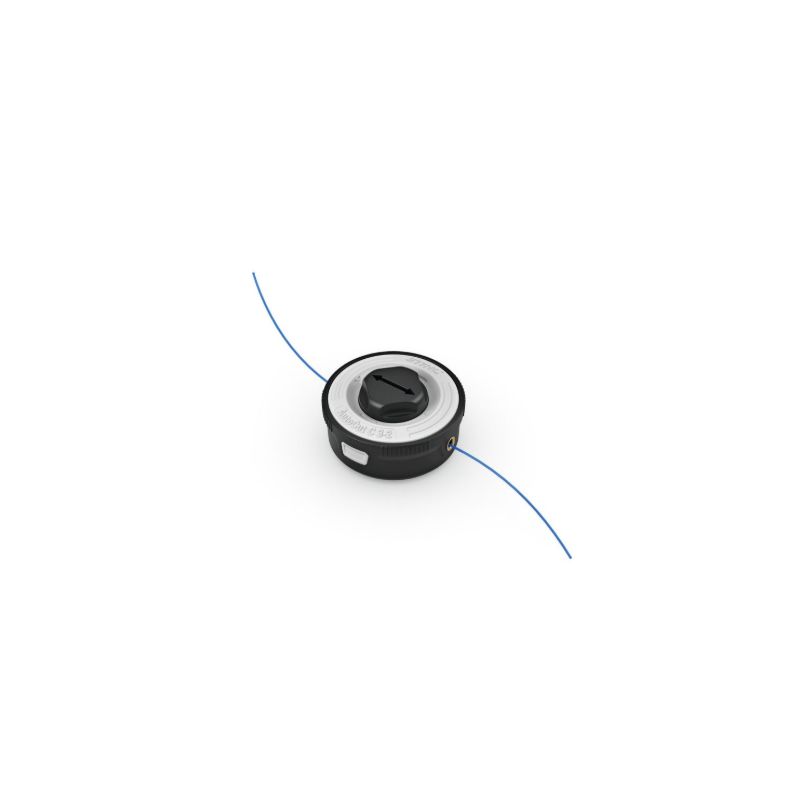 Tête Faucheuse à double fil, pour les travaux de nettoyage et de fauchage. Le fil de coupe est automatiquement ajusté par frappe de la tête de coupe au sol. Le rechargement du fil peut se faire de l'extérieur sans ouvrir le boîtier. Cette tête se monte sans outil grâce au pas de visse (orange) présent sur les machines compatibles.